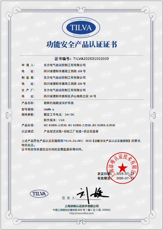 近日,東方自控自主研發的旋轉機械超速保護系統 (Usafe α)成功獲得功能安全最高等級SIL3認證,標志著公司在高端裝備安全保護領域實現關鍵突破,為國家能源及重大裝備安全筑牢自主可控的“東方屏障”。在安全系統領域,SIL認證是一項極為關鍵的等級標準,它專注于對安全系統的設計與實施狀況展開深入評估,以此精準確定系統的安全完整性水平,確保在面臨故障或事故時,系統能夠切實發揮預期的安全防護效能。在電力、化工等關...